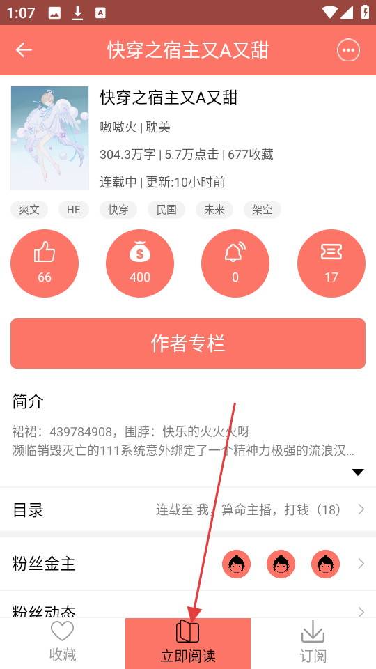 1、在书籍详情页,点击【立即阅读】,可进入阅读页面,开始阅读书籍啦。