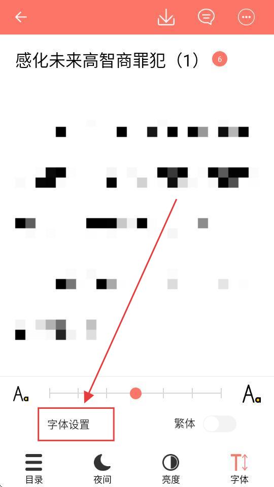 2、进入阅读页面后,点击【字体】,可打开字体设置选项,调整阅读字体哦。