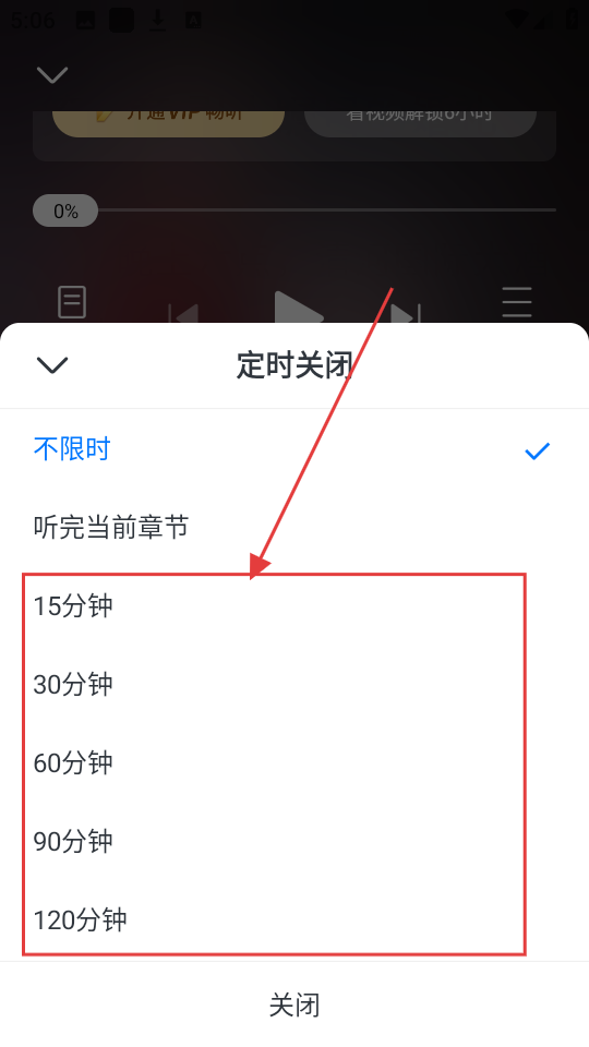 4、选好定时时长后,定时按钮会显示所选时间,这样听书到设定时间就会自动关闭,超方便的呢。