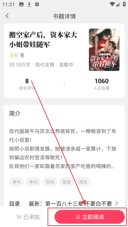 2、找到喜欢的小说后,点【立即阅读】,就能马上沉浸在故事里啦。