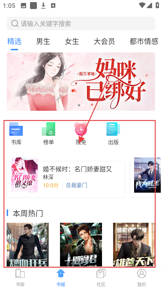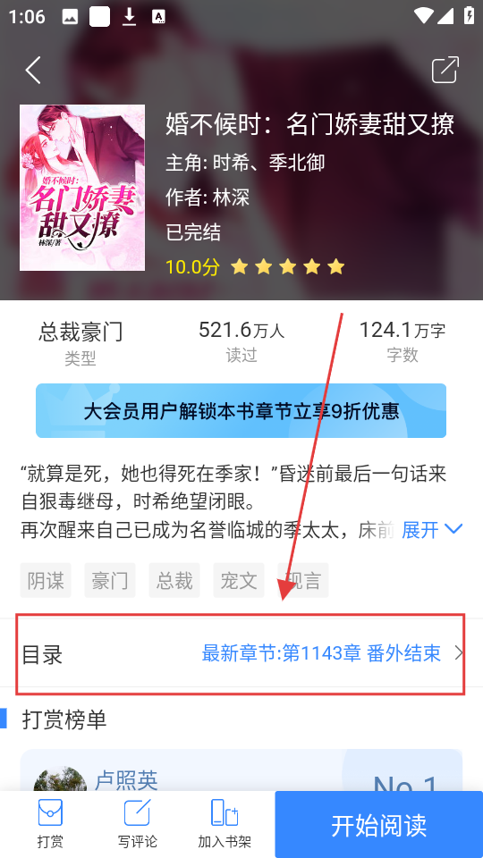 1、书城页选《婚不候时:名门娇妻甜又撩》,进入详情页,了解小说信息哦。