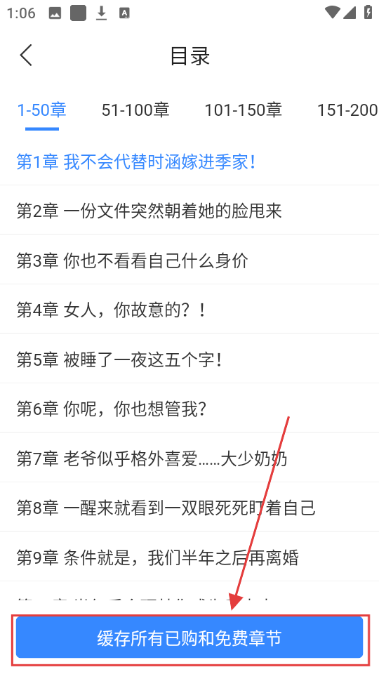 3、目录页点【缓存所有已购和免费章节】,可缓存章节,方便离线阅读呢。