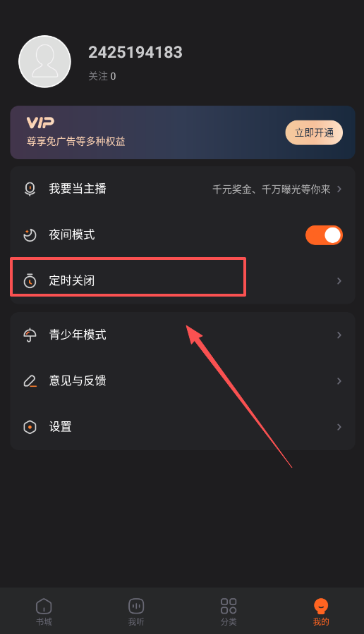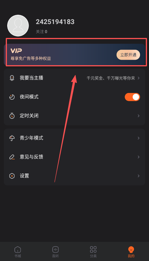 4、喜欢无打扰的收听环境,可以考虑开通VIP,这样可以免去广告的干扰,享受更纯净的听书体验。