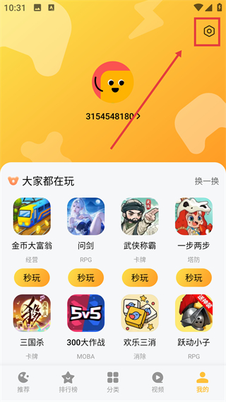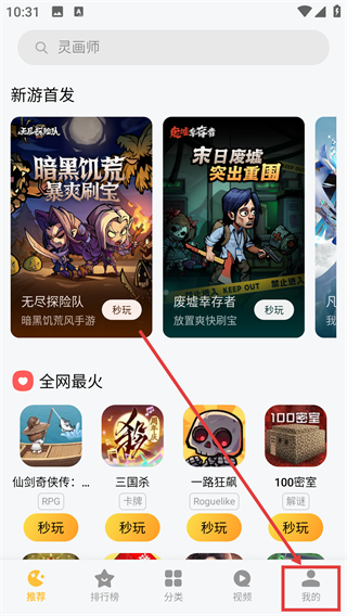 1、在游戏平台首页点底部的【我的】选项,能进入个人中心界面,后续可找到设置功能入口啦。