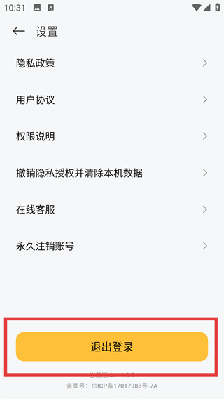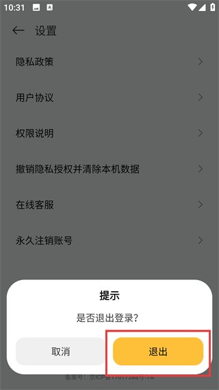3、在设置页找到底部的【退出登录】按钮,点击它就能触发退出登录的确认提示框啦。