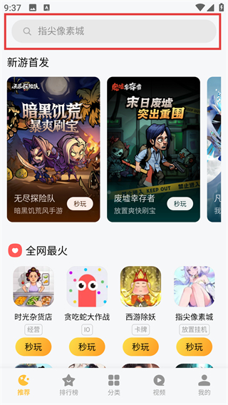 1、在应用首页点击顶部搜索框,就能输入想找的游戏名称,快速定位到目标游戏啦。