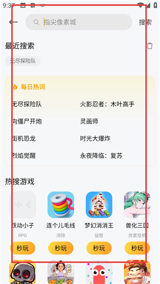 2、进入搜索页面后能看到【最近搜索】和【每日热词】,选热词里的游戏名就能直接发起搜索哦。