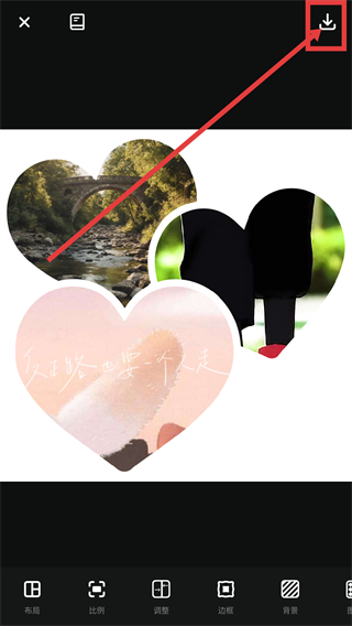 4、调整好拼图样式后,点右上角【下载】按钮,就能把拼好的图片保存到设备里,方便使用哦。