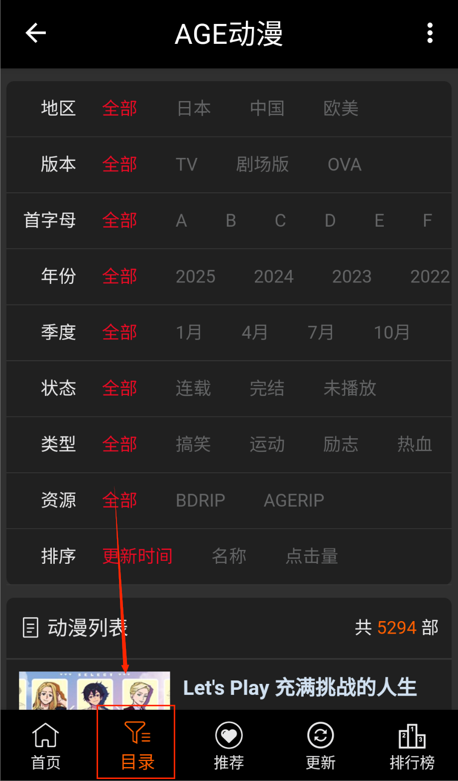 2、想系统浏览可以进入目录页面,这里支持按地区、版本、年份等多维度筛选,比如选择"日本+TV版+2024年"就能快速缩小范围。