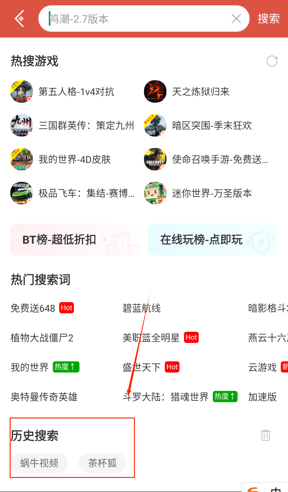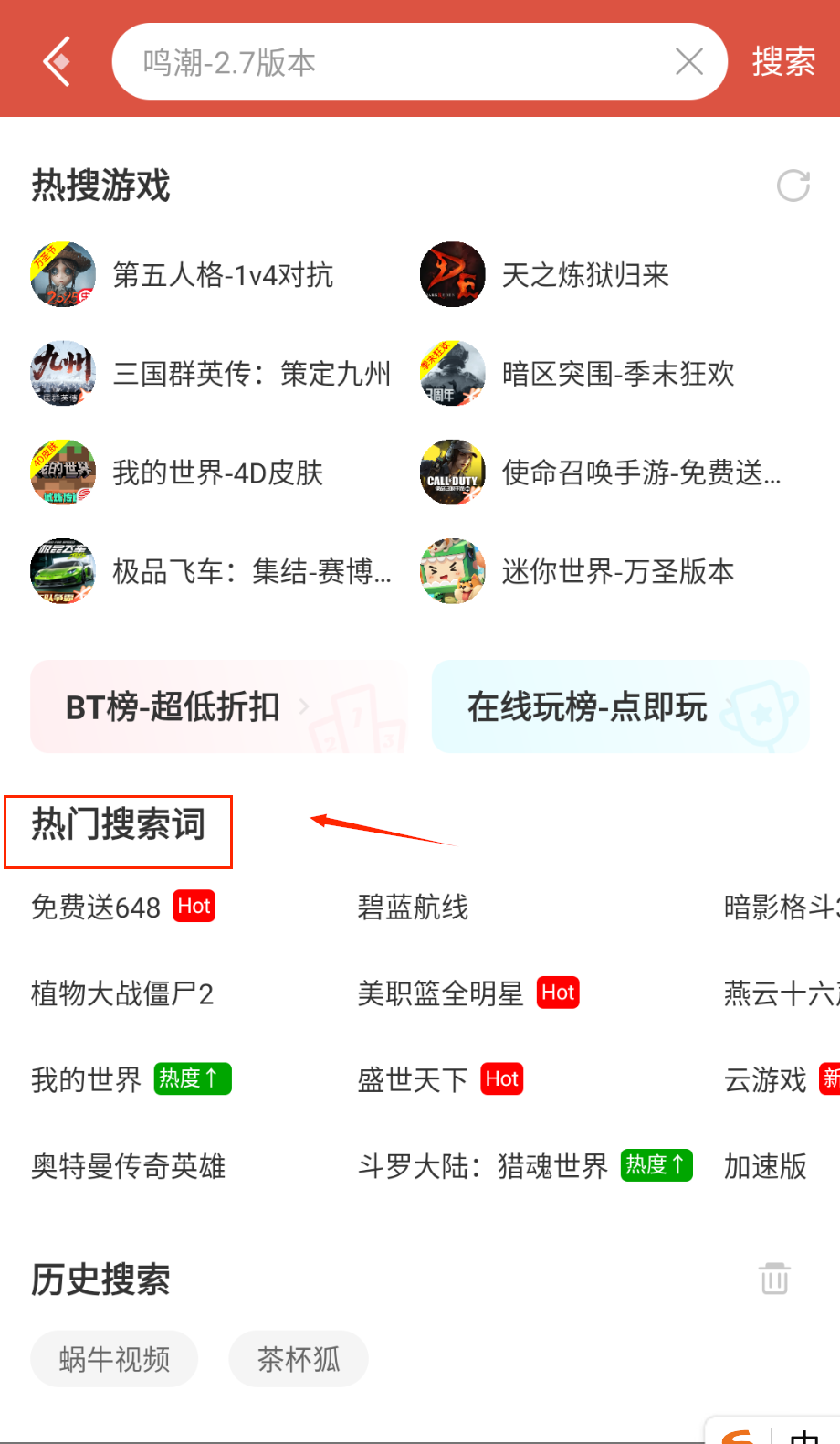 1、打开软件后首先关注顶部的搜索框,这里可以输入游戏名称或关键词进行精准查找,比如输入"鸣潮"就能直接找到相关游戏。