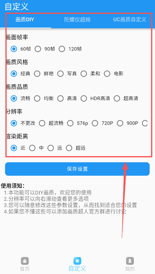 3、如果想深入学习,首页的“使用教程”是你的好帮手,里面用最直白的语言解释了如何解锁自定义画质和帧率。