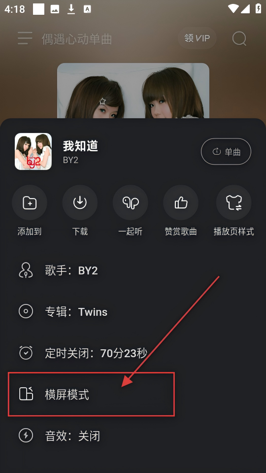 3、在更多操作里,找到【横屏模式】选项,点击它,就能切换到横屏播放界面啦。