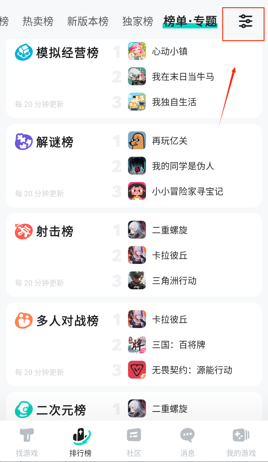 1、在排行榜页面点击右上角的自定义按钮,可以调整首页显示的榜单类型和顺序,把最关注的榜单放在前面方便查看。