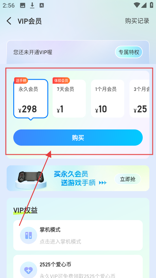 3、在会员开通页面选好会员类型后点【购买】按钮哦,这样就能进入支付环节啦。