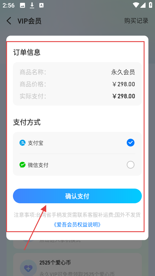 4、在支付页面选好支付方式后点【确认支付】按钮哦,完成支付就能开通会员啦。