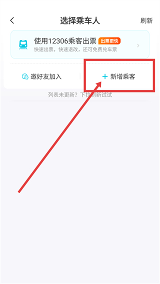 4、进入选择乘车人页面后,点击【新增乘客】按钮,即可填写新乘车人的身份信息,完成添加啦。