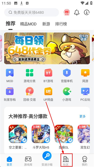 1、点击【社区】,进入社区页面,能参与游戏相关的讨论和互动哦。