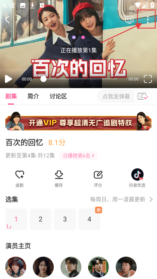 2、点开一部剧集后,看到右上角的三点图标,点它就能展开更多功能选项,超方便的哟。