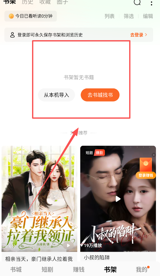 2、担心下次找不到正在读的书,一定要善用“书架”功能,遇到喜欢的书,加入书架后就会永久保存在那里。