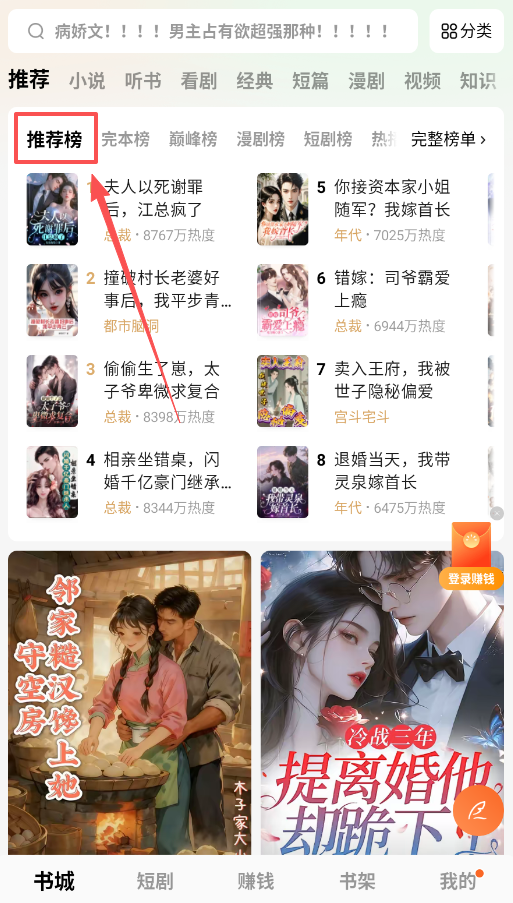 2、在书城轻松找到爆款小说,点击“书城”,你会看到大量标注了“热度”值的作品,这些通常都是受欢迎的免费内容。