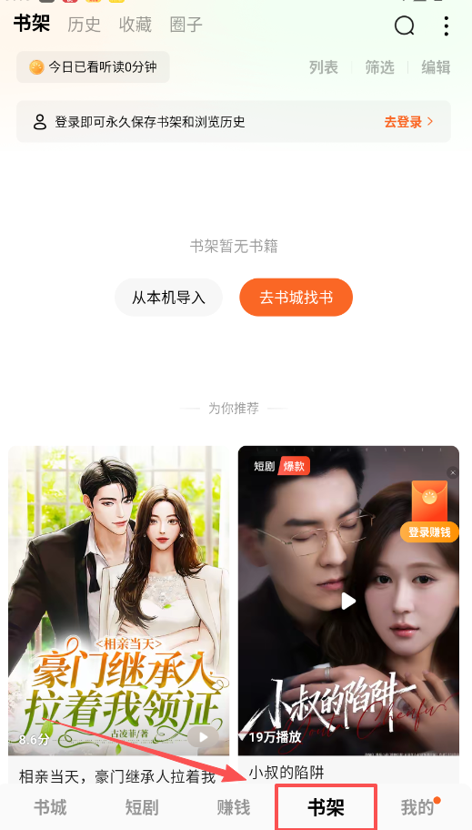 3、把好书加到书架永久保存,看到感兴趣的书,记得放入“书架”,这样即便没读完,下次也能在“书架”页轻松找到。