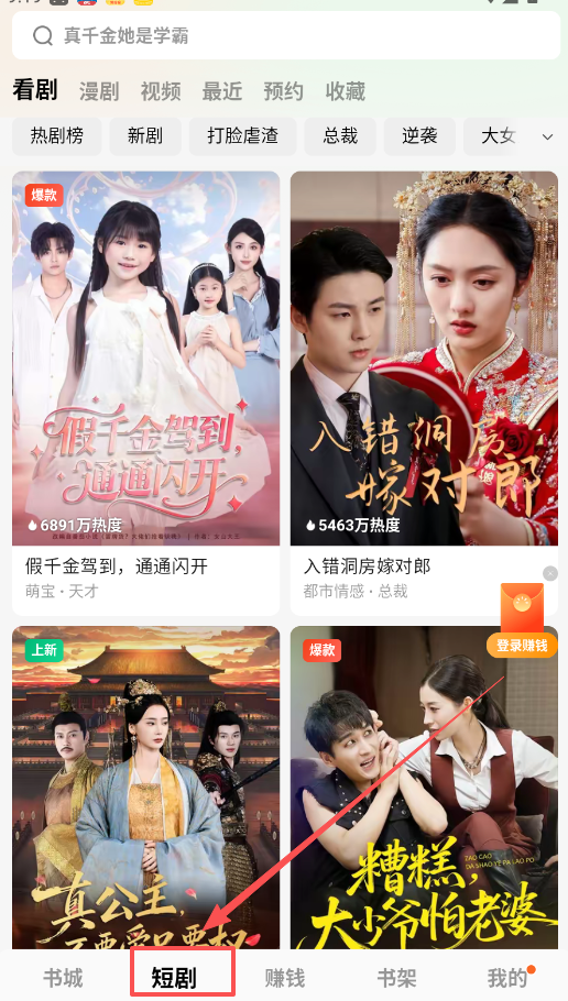 4、短剧区也有爆款免费看,别光看小说,点开“短剧”页面,这里有很多免费短剧,点开就能直接观看不用花钱。