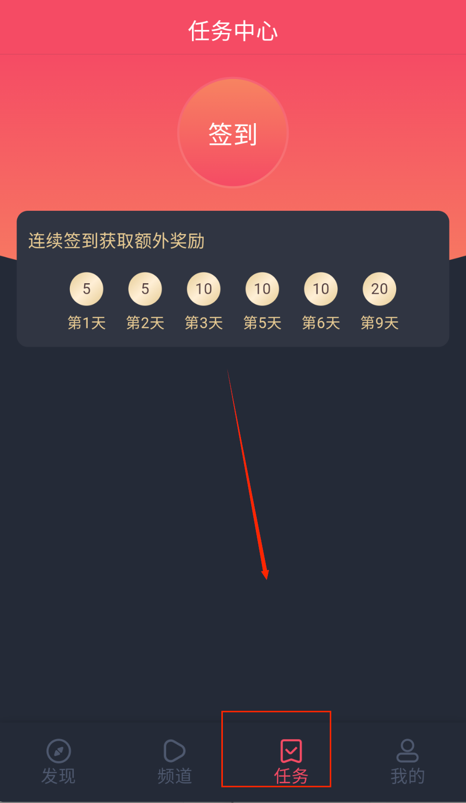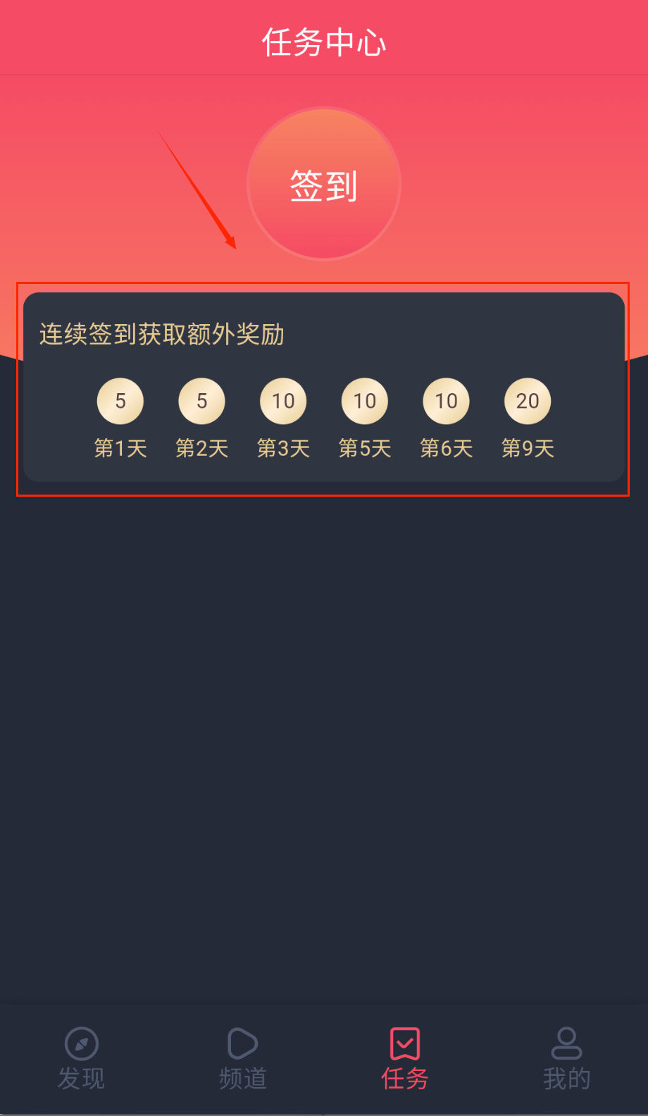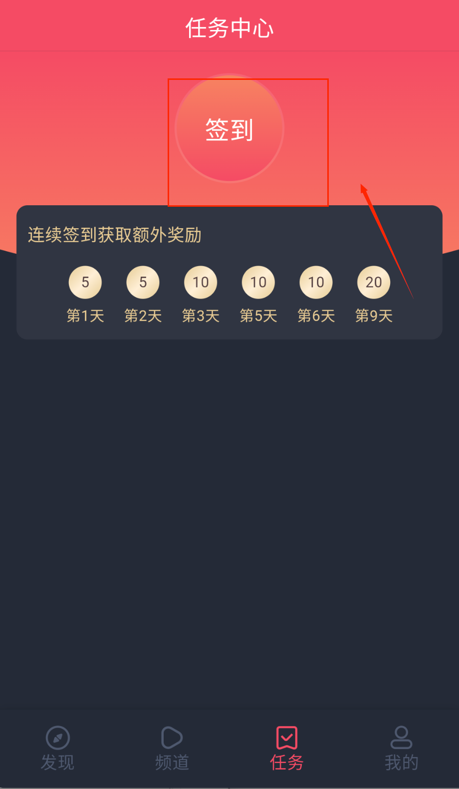 1、进入任务中心点击签到按钮,每日首次签到获得基础奖励,连续签到触发额外奖励机制,奖励随签到天数递增。