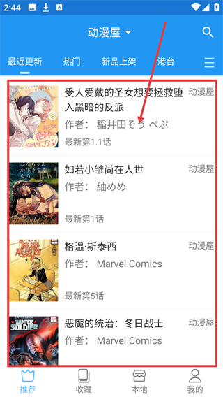 4、切换到【收藏】页面,就能看到刚才收藏的动漫作品,后续可直接在此处找到并阅读哦。
