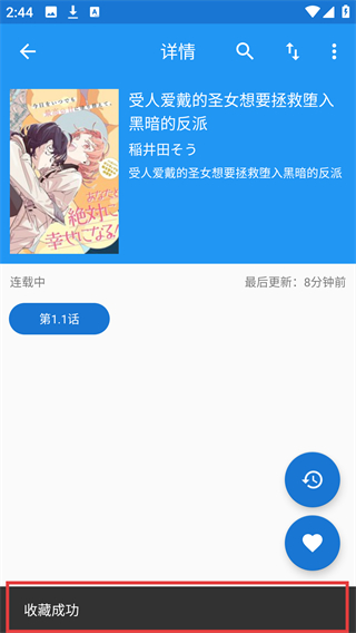 3、点击收藏按钮后,页面会弹出【收藏成功】的提示,说明该动漫已成功加入收藏列表啦。