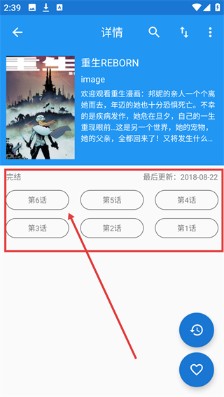 4、在漫画详情页,点对应的章节按钮,就能进入该话的阅读界面开始看漫画哦。