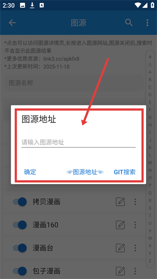 4、在图源地址窗口中,输入对应的图源地址后点击【确定】,就能完成新图源的网络导入操作哦。