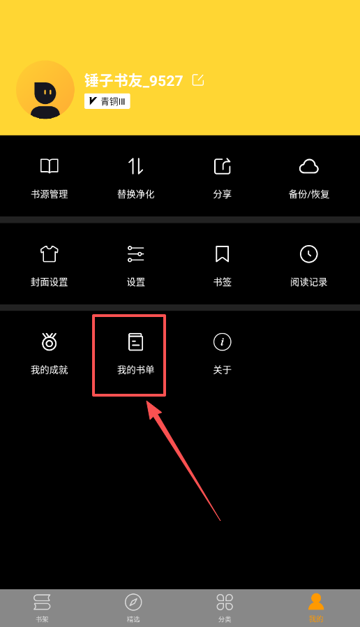 3、管理自己的阅读地盘,得点开左上角头像。在这里你能整理“书架”上的书,在“书源管理”里捣鼓一下阅读规则。