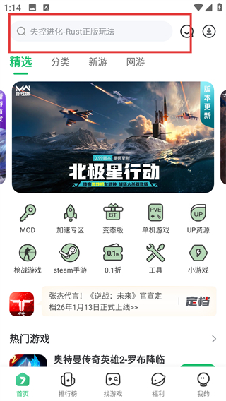 1、在首页点击顶部的搜索框,输入想找的游戏名,就能快速检索对应的游戏资源啦。