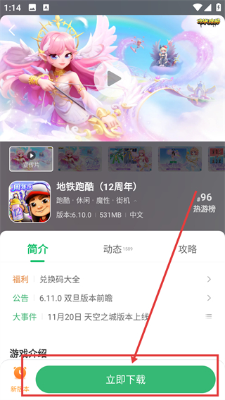 4、进入游戏详情页后,点击底部的【立即下载】按钮,就能开始下载这款游戏啦。