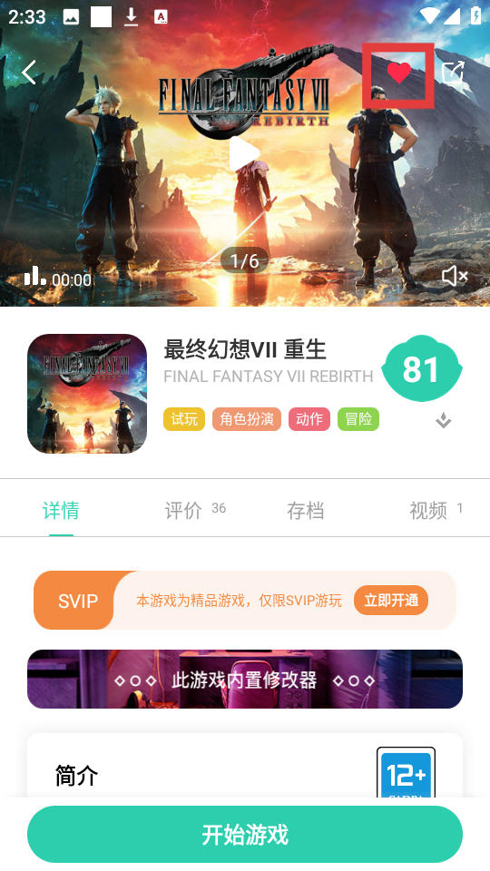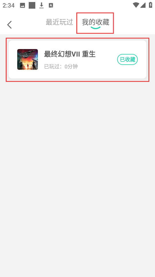 4、在【我的收藏】页面,可看到已收藏的游戏【最终幻想VII重生】,随时可点击进入游戏详情页哦。