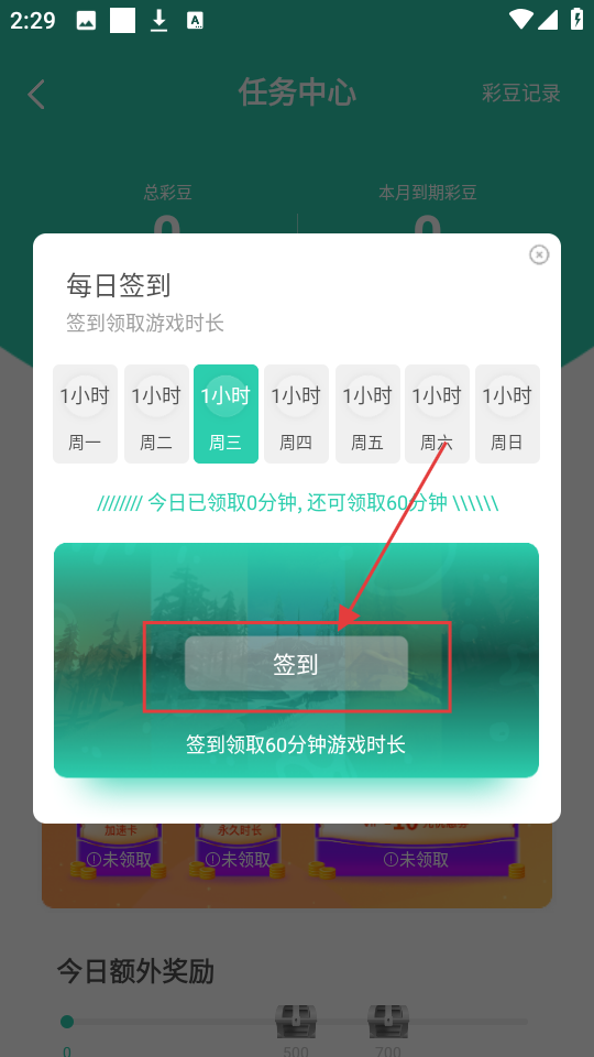 4、签到时确认领取时长,点【签到】就能拿到游戏时长奖励啦,超划算哦。