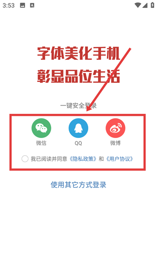 4、收藏字体前会进入登录页,勾选协议后选择【微信】【QQ】等方式登录,就能完成收藏操作啦。