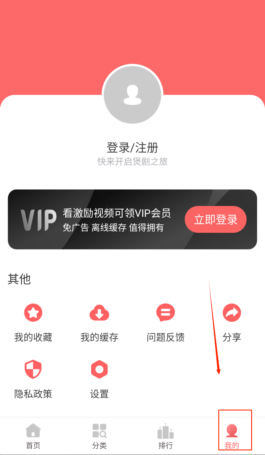 1、新用户启动软件后先关注首页的VIP提示区域,了解通过观看激励视频获取会员特权的方式。