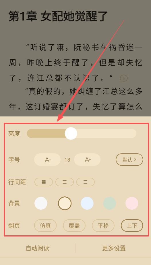 4、阅读设置选项允许用户自由调整界面背景和字体样式,打造最符合个人喜好的阅读环境,让您畅享无阻阅读乐趣。