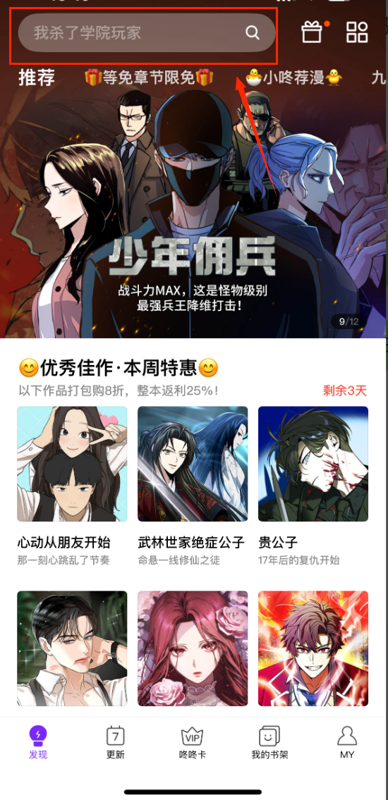 1、打开应用后可通过顶部搜索框输入作品名直接查找,或浏览首页热门推荐与分类栏目发现感兴趣的新漫画。