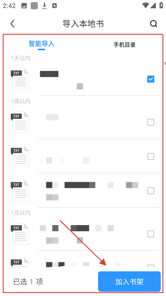 4、选择好要导入的本地小说后,点击【加入书架】,就能把小说加入书架,随时阅读咯。