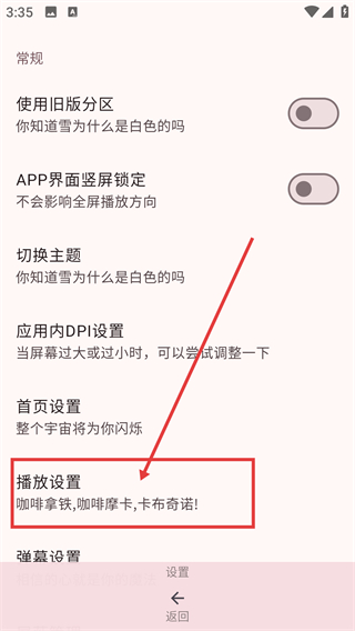 3、进入设置页后点击【播放设置】选项,就能进入播放相关的设置页面,调整视频播放的配置啦。