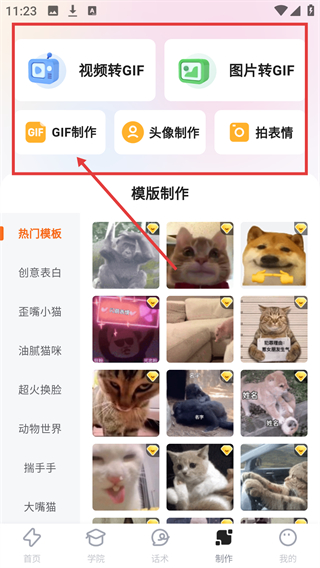 1、在首页,点【GIF制作】选项,可进入GIF编辑页面,开启GIF创作的流程哦。