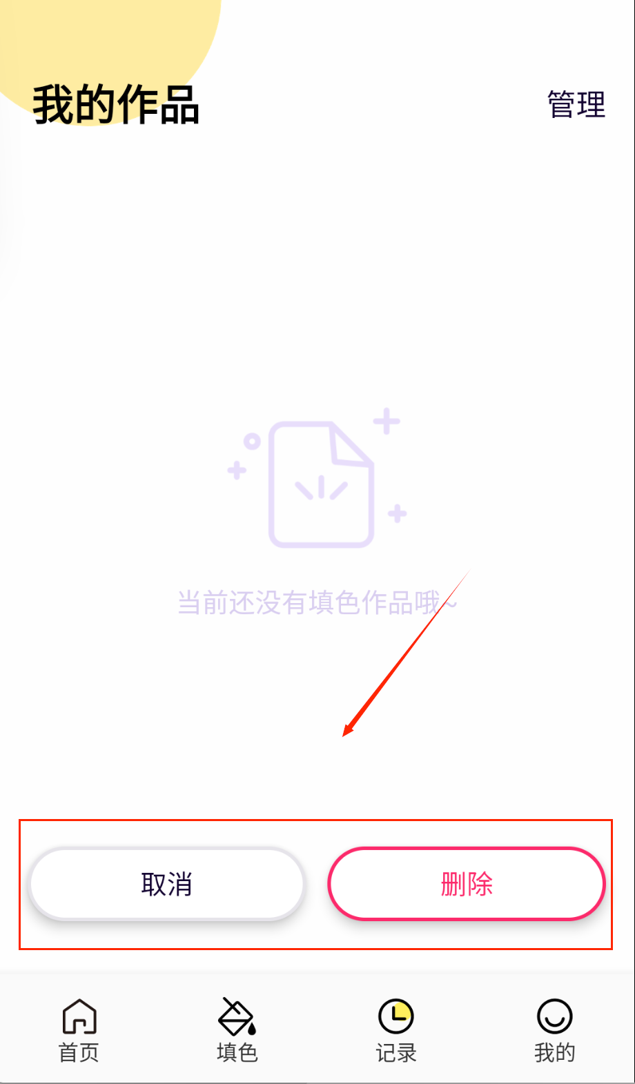 1、在记录页面可以查看所有填色作品,首次使用会提示当前还没有填色作品,完成填色后这里会显示作品缩略图列表,方便快速找到特定作品。