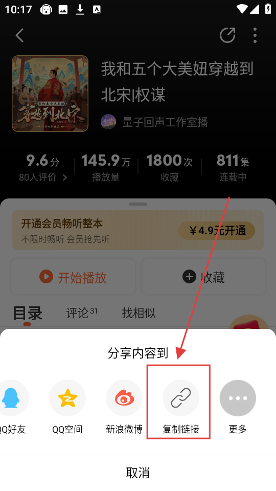 3、打开分享选项后,选择【复制链接】按钮,就能把作品链接复制下来啦。