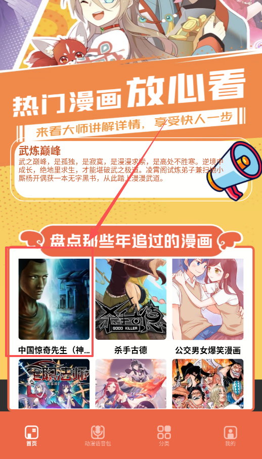 1、软件首页展示了放心看的热门漫画,例如武炼巅峰和中国惊奇先生,直接点击任意一部就能进入阅读界面。