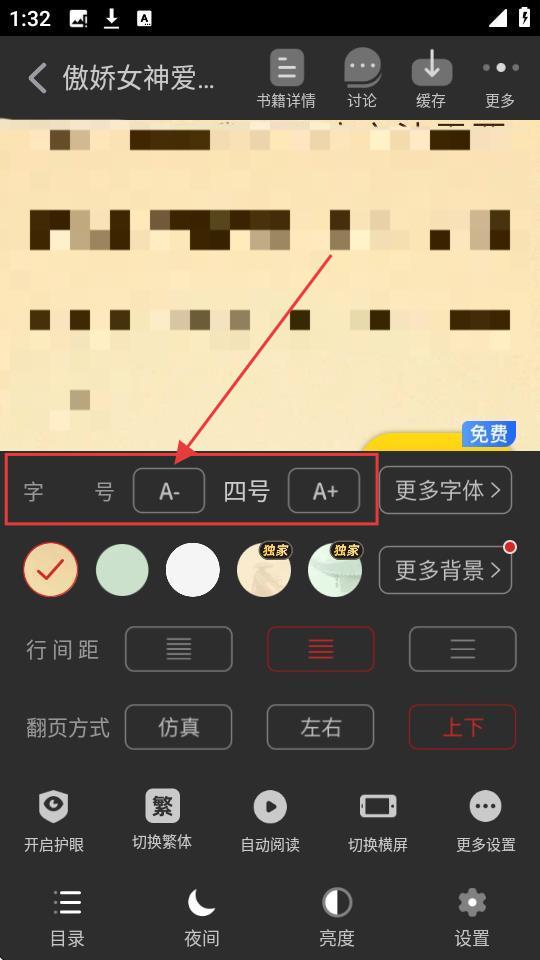 3、点击【A-】,字号从四号变为小一,可根据阅读习惯多次调整,直到合适的大小哦。