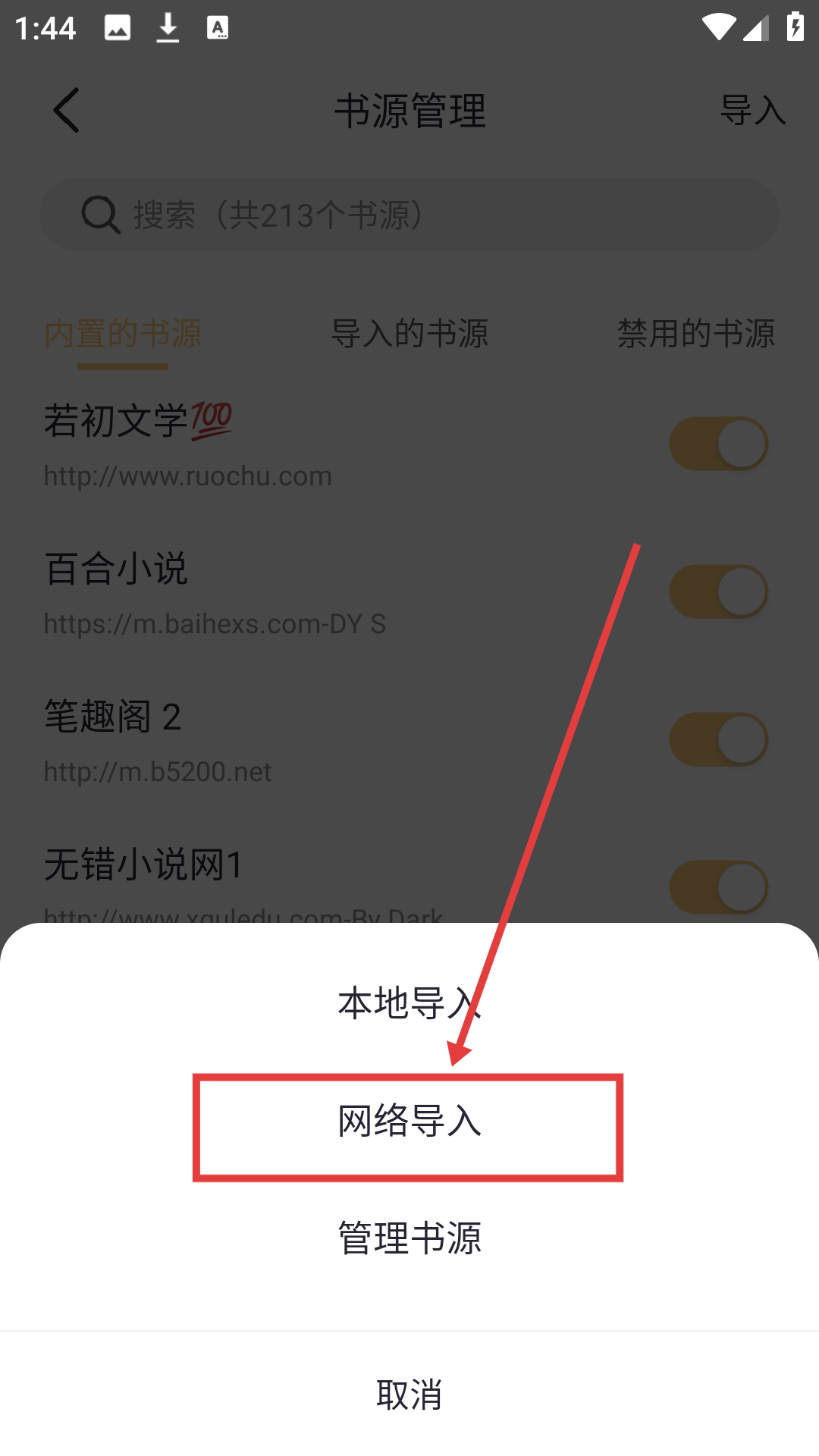 3、在导入选项中,点【网络导入】,可进行网络书源导入操作呢。