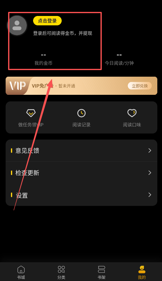 1、要享受完整服务,先从“我的”页面登录账号,在这里,也可以设置阅读偏好,让整个阅读环境更纯粹。
