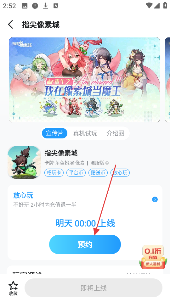 2、在预约页面,挑选心仪的新游,比如【指尖像素城】,点击进入该游戏的详情页面哦。